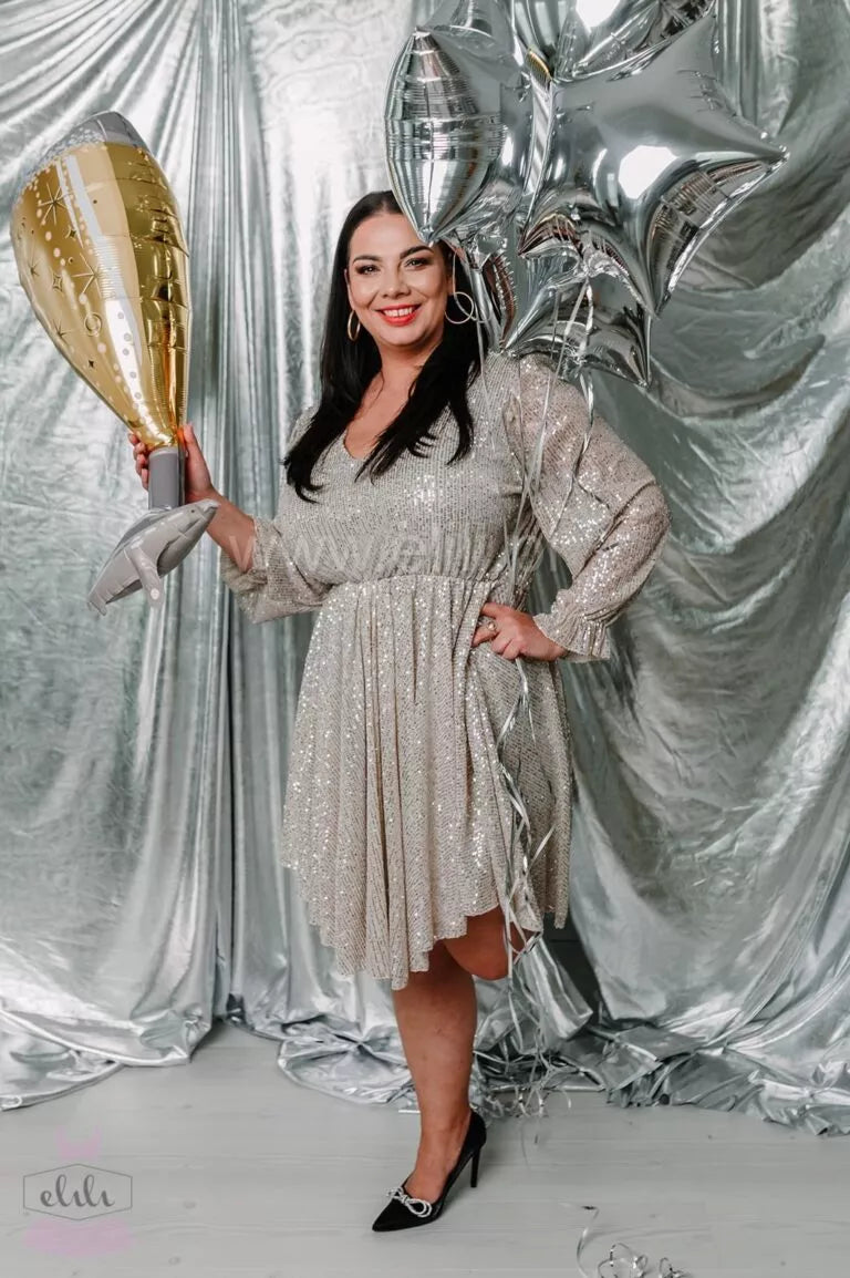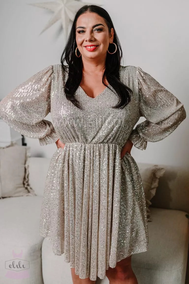 Alisa – Luksusowa Szampańska Sukienka z Elegancką Falbaną